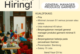 – Berpengalaman menjadi general manager produksi garment minimal 5 tahun
