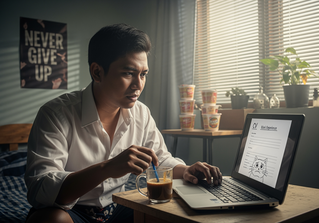 Tanganku pernah dingin saat menghadapi bulan tanpa pekerjaan tetap. Di sini pentingnya mengelola keuangan dengan baik. Jangan tergiur dengan hasil proyek besar sekali waktu dan lalai menyiapkan dana cadangan. Dengan begitu kita akan lebih tangguh menghadapi ketidakpastian.