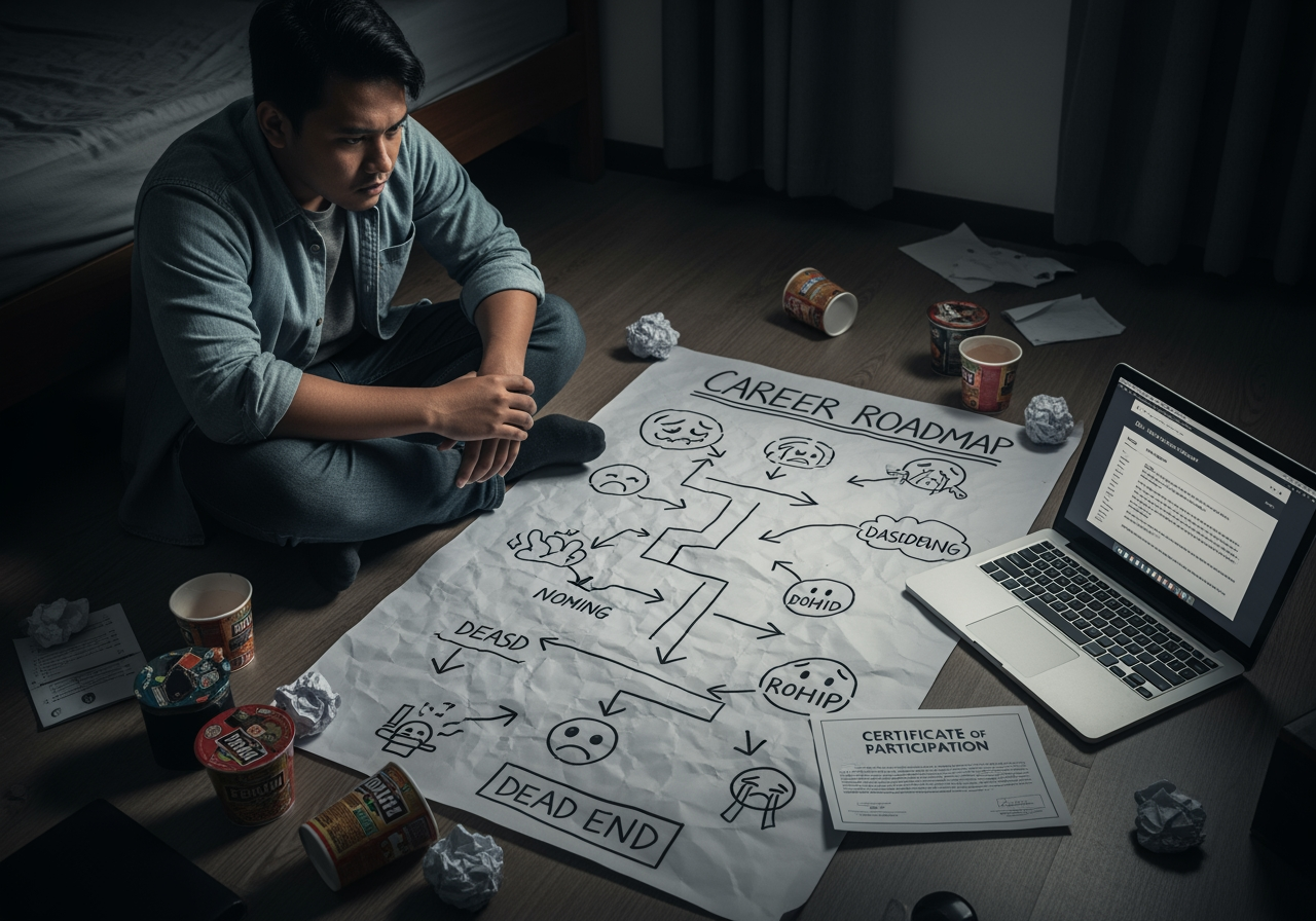 Pernah nggak sih kamu lagi scrolling LinkedIn, terus lihat teman lama posting soal promosi jabatan barunya? Atau mungkin lihat ada yang bangga banget pamer sertifikasi baru yang keren banget. Di satu sisi kita ikut senang, tapi di sisi lain, ada suara kecil di kepala yang bisik-bisik, “Duh, aku kok gini-gini aja, ya? Habis ini mau ke mana, sih?” Kalau kamu pernah ngerasain ini, you are not alone, bestie! Rasanya tuh kayak lagi nyetir di jalan tol yang panjang, tapi nggak tahu mau keluar di gerbang tol mana. Bingung, cemas, dan sedikit tersesat.